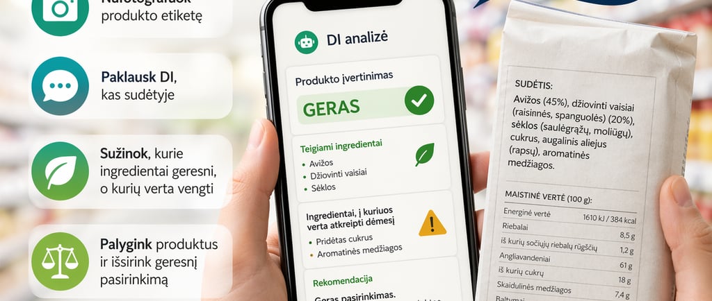 💡 Svarbu: DI gali padėti geriau suprasti informaciją, bet galutinis sprendimas visada lieka tavo rankose. Kritinis mąstymas – vis dar geriausias vartotojo įrankis.